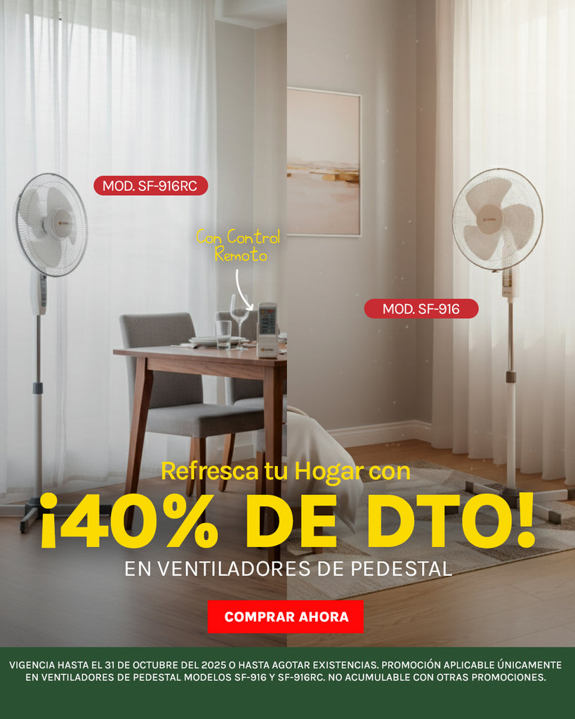 A diferencia de los aires acondicionados, que incrementan los costos de electricidad y resecan el ambiente, con ventiladores como el SF-425 disfrutas de frescura inmediata sin comprometer el confort de quienes permanecen en el espacio.