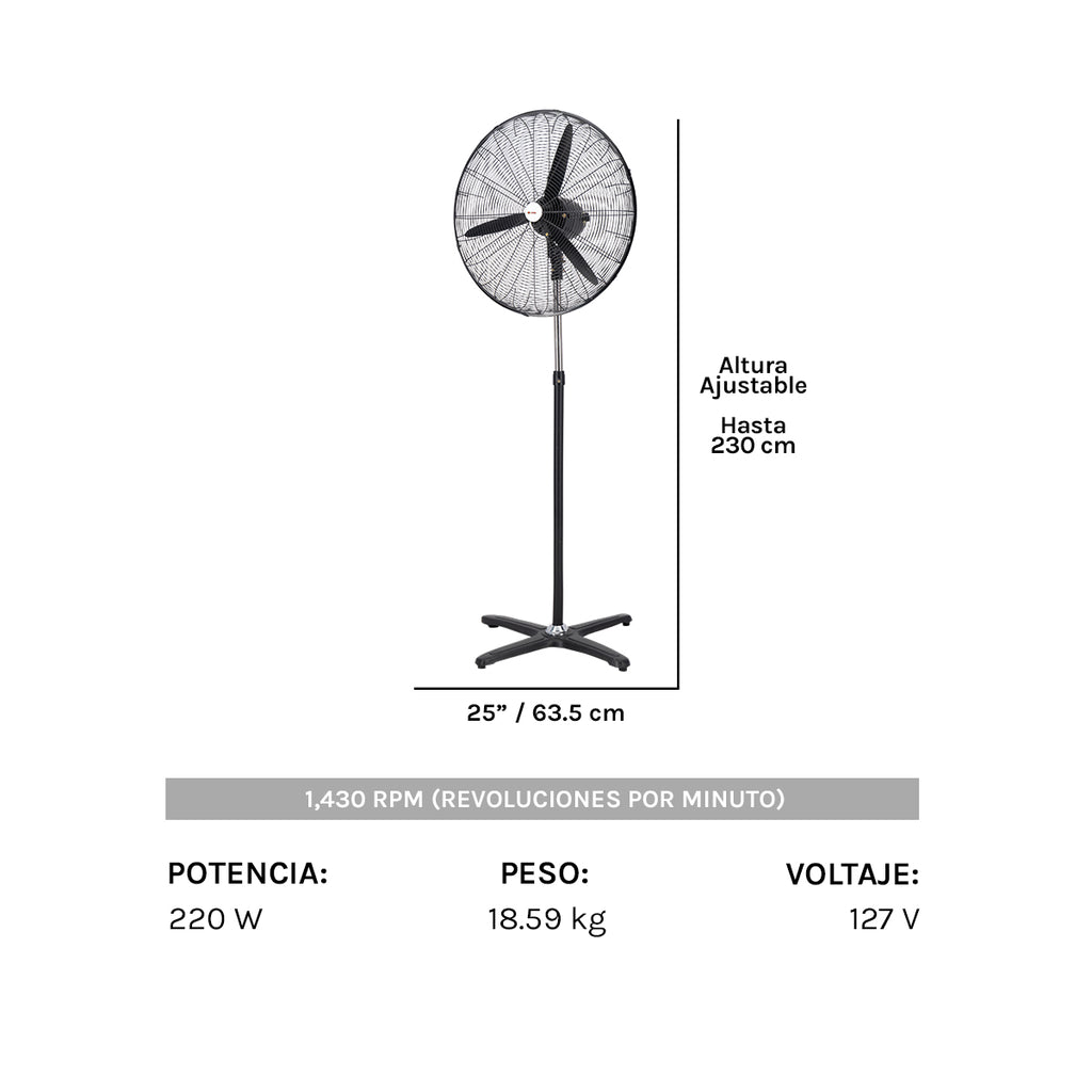 Ventilador Linke Industrial de Pedestal, para trabajo pesado en Interiores, Modelo SF-425. Control Manual con 3 velocidades. 3 Aspas. 25 pulgadas.