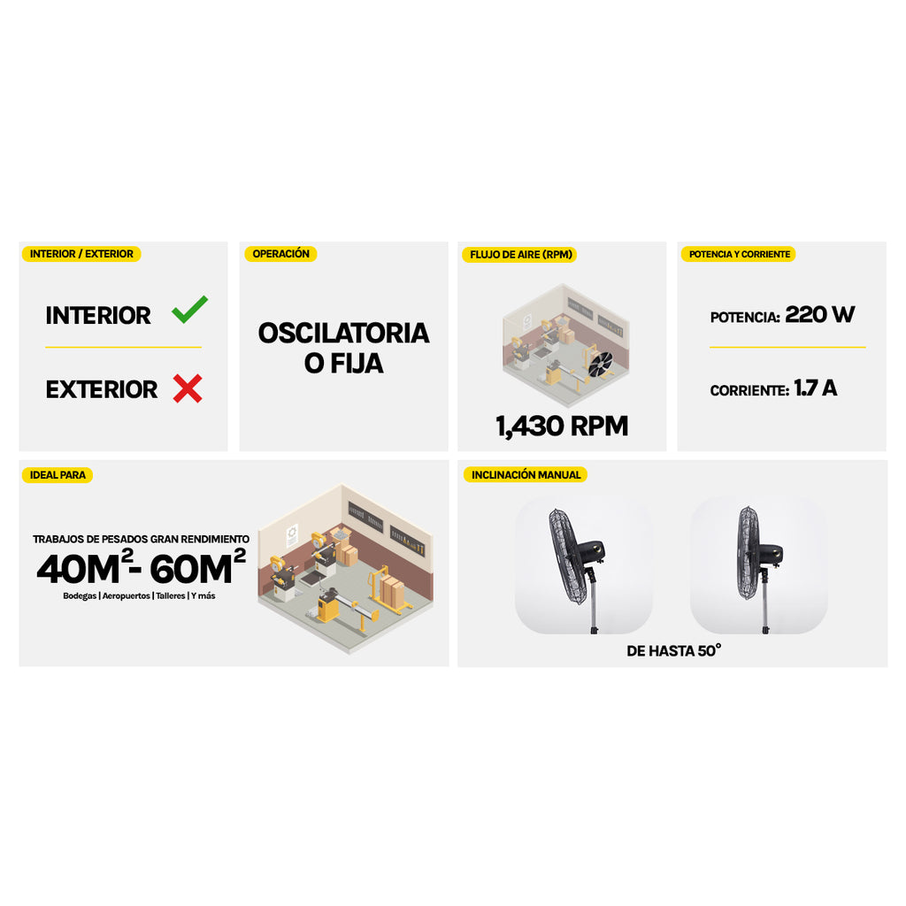 Potencia y rendimiento: gran flujo de aire generado para una máxima frescura y eficiencia en espacios que requieren constante ventilación.