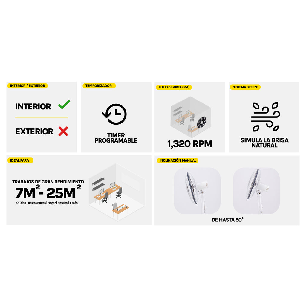 Control remoto: enciende, apaga y selecciona la velocidad o función con comodidad desde cualquier lugar.